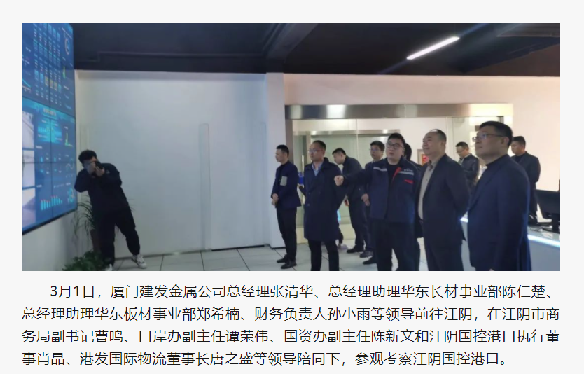 建發(fā)金屬參訪考察江陰國(guó)控港口并達(dá)成合作意向